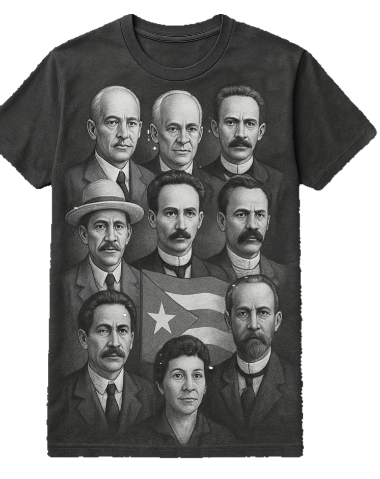 This stylish greyscale collage t-shirt will make you the envy at the Puerto Rican Day Parade coming up in New York City or even among your culture rich peers. Featuring prominent historical figures on the front and a declaration of pride on the back. Airy cotton material will keep you cool in the sun or shade. Comes in Black, white, or grey colors that will compliment your fashion choices with ease.